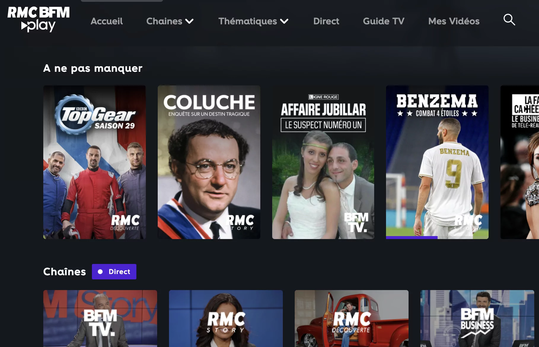 “RMC BFM Play, du direct, des replays, des avant-premières et des exclusivités”, la nouvelle plateforme de VOD gratuite des chaînes RMC Découverte, RMC Story, BFMTV, BFM Business, 01TV et des chaînes locales BFM Paris, Lyon, Grand Lille, Grand Littoral et BFM DICI, vit ses premières heures. Côté distribution,“disponible au lancement sur le web, l’App Store et Google Play, RMC BFM Play sera disponible par la suite sur les TV connectées et sur les box opérateurs”, annonce un communiqué.