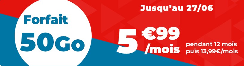 Jusqu’au 27 juin 2021, Auchan Telecom commercialise un forfait 4G sans engagement à 5,99 euros par mois. Un tarif promotionnel valable durant les 12 premiers mois, avant un passage à 13,99 euros. Limité à la 4G, il comprend les appels, SMS et MMS illimités, ainsi que 50 Go de data pour l’Internet Mobile. Comme à l’accoutumée, il faudra prévoir 10 euros à régler au moment de la commande pour l’acquisition de la carte SIM triple découpe.
