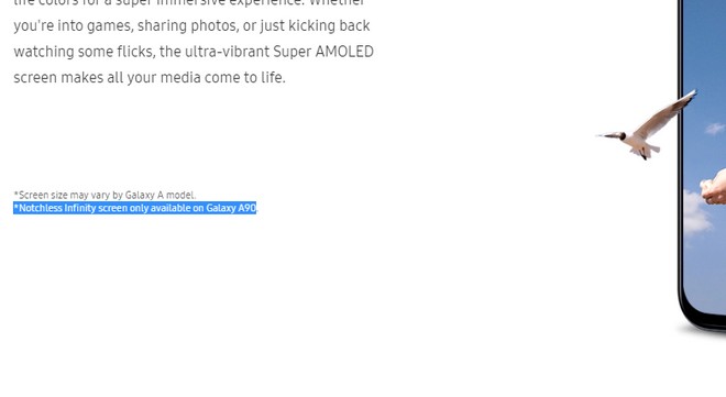 Et voilà qu’une information publiée sur le site indonésien du constructeur semble confirmer la caractéristique. Sur la page dédiée à la famille Galaxy A, on peut en effet lire « Notchless infinity screen only available on Galaxy A90 ». Pas d’encoche pourrait effectivement indiquer cette partie photo rétractable dans la tranche supérieure. Mais l’absence d’encoche pourrait aussi se traduire par un écran percé. Wait & See. La page est en tout cas toujours accessible au moment où sont écrites ces lignes.