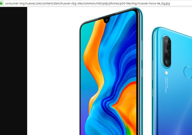 Petite découverte sur le site malaisien de Huawei. En ouvrant le première image d’illustration du Nova 4e dans une nouvelle page du navigateur Web, on se retrouve dans un sous-dossier "p30-lite". Cela confirme qu’il s’agit du même appareil. On connaît ainsi les caractéristiques techniques du Huawei P30 Lite attendu en Europe puisqu’il sera le fruit du renommage du Huawei Nova 4e officialisé dernièrement.
