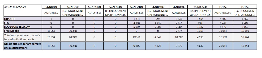 L’ANFR vient de publier son observatoire du déploiement de la 5G. Au 1er juillet 2021, 31 580 sites étaient autorisés, dont 16 974 techniquement opérationnels.