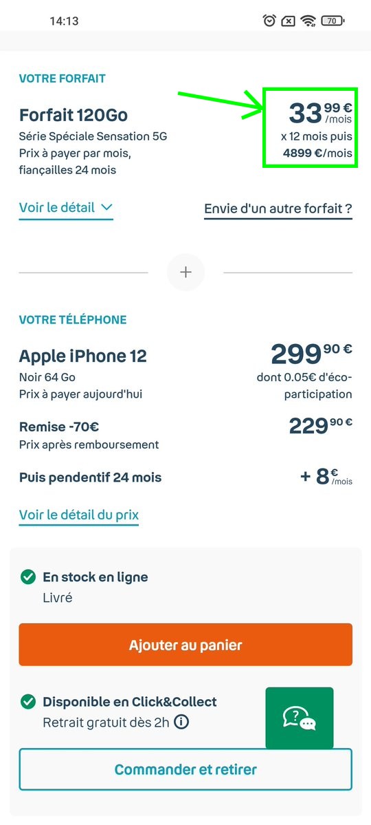 D’après le récapitulatif de son forfait, disponible depuis l’application, il passerait en effet de 33,99 euros à 4 899 euros. Soit une facture mensuelle multipliée par 144 au-delà des 12 mois.