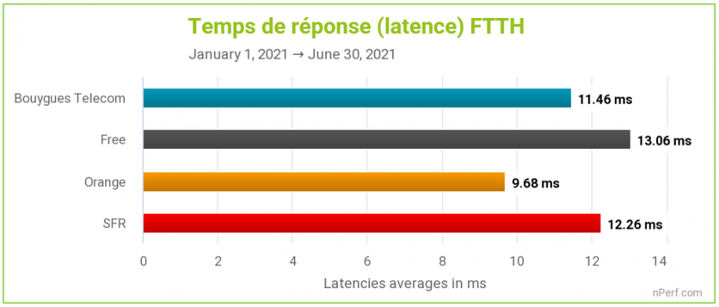 Le temps de réponse du réseau Orange lui permet de maintenir sa première place au classement général des opérateurs en FTTH, malgré le leadership sur les débits descendants et montants. Avec une différence d’environ 3.3ms, l’opérateur de Xavier Niel reste en effet mauvais élève sur la latence, mais se rattrape avec des downloads et uploads supérieurs à tous ses concurrents.