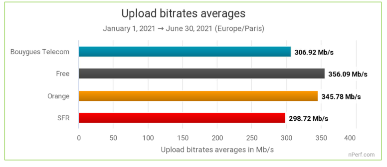 nPerf salue également les améliorations observées chez SFR, Bouygues et Orange, qui ont vu leurs débits augmenter d’entre 39Mb/s et 49 Mb/s par rapport à 2020.