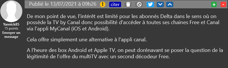 Et si les commentaires enthousiastes relatant des premières expériences agréables fleurissent un peu partout, certains se posent cependant la question de l’utilité de cette appli en plus de myCanal. Notamment pour les abonnés TV by Canal justement. Mais Yannick85 soulève également un point : si l’appli Oqee se déploie partout : quid du multiTV ?