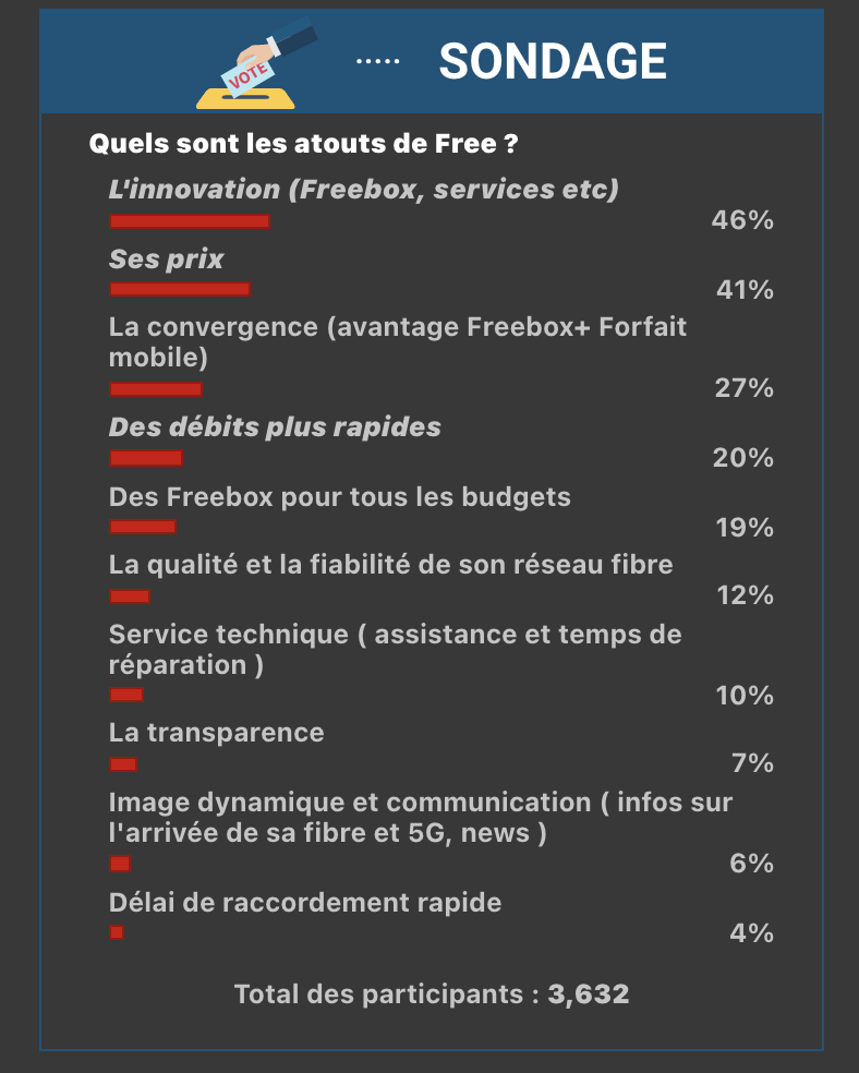 Avec quels atouts Free peut vous charmer ? Le 14 mai, Univers Freebox a publié un sondage pour demander aux Freenautes quels étaient les atouts de l’opérateur.