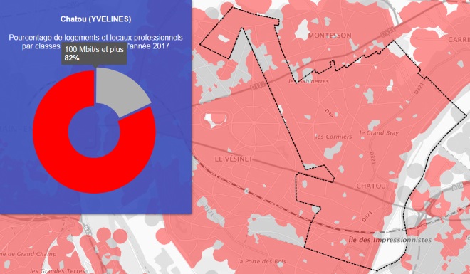 Aujourd’hui, grâce aux données fournies par l’Observatoire France Très Haut Débit, nous vous proposons de découvrir le déploiement du très haut débit pour tous les opérateurs sur la 257ème ville la plus peuplée de France : Chatou.