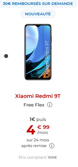 Un nouveau smartphone à petit prix rejoint la boutique en ligne de Free Mobile. Il s’agit du Redmi 9T, dont Xiaomi nous avait d’ailleurs confirmé l’arrivée. Ce smartphone d’entrée de gamme est affiché à 169 euros au comptant dans sa configuration avec 4 Go de RAM et 64 Go de stockage. La récente formule Free Flex permet par ailleurs de l’obtenir pour 4,99 euros par mois.