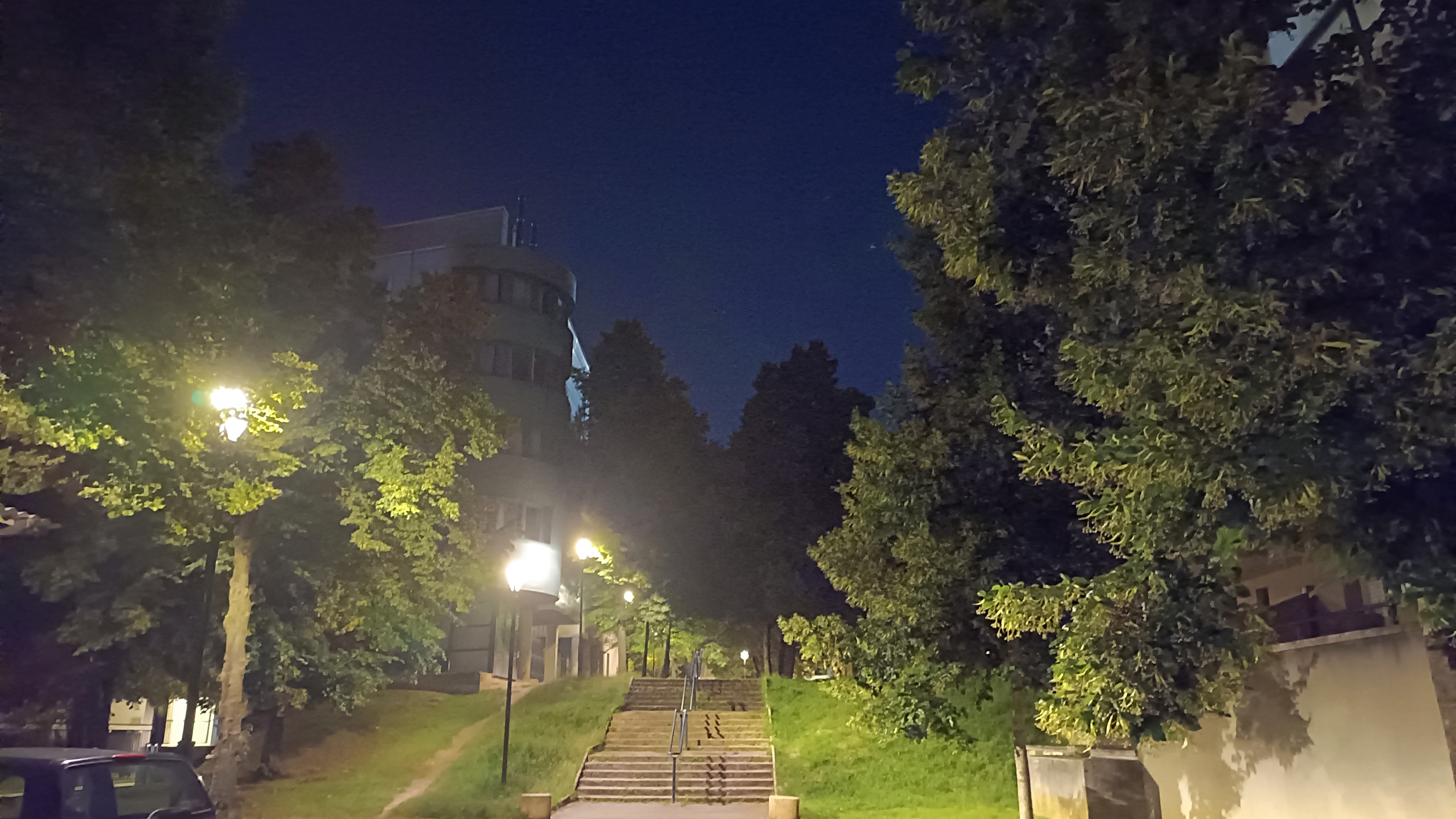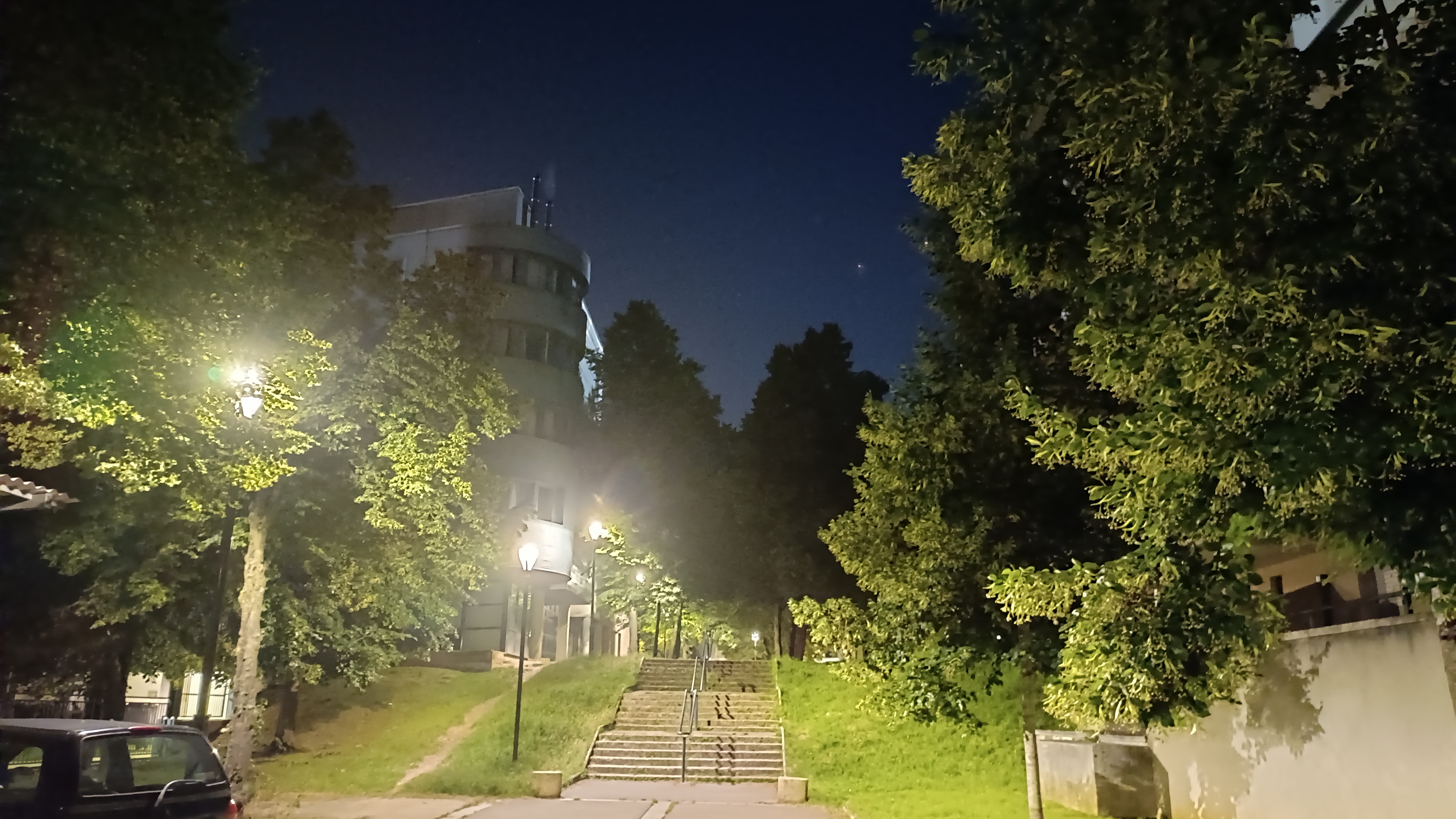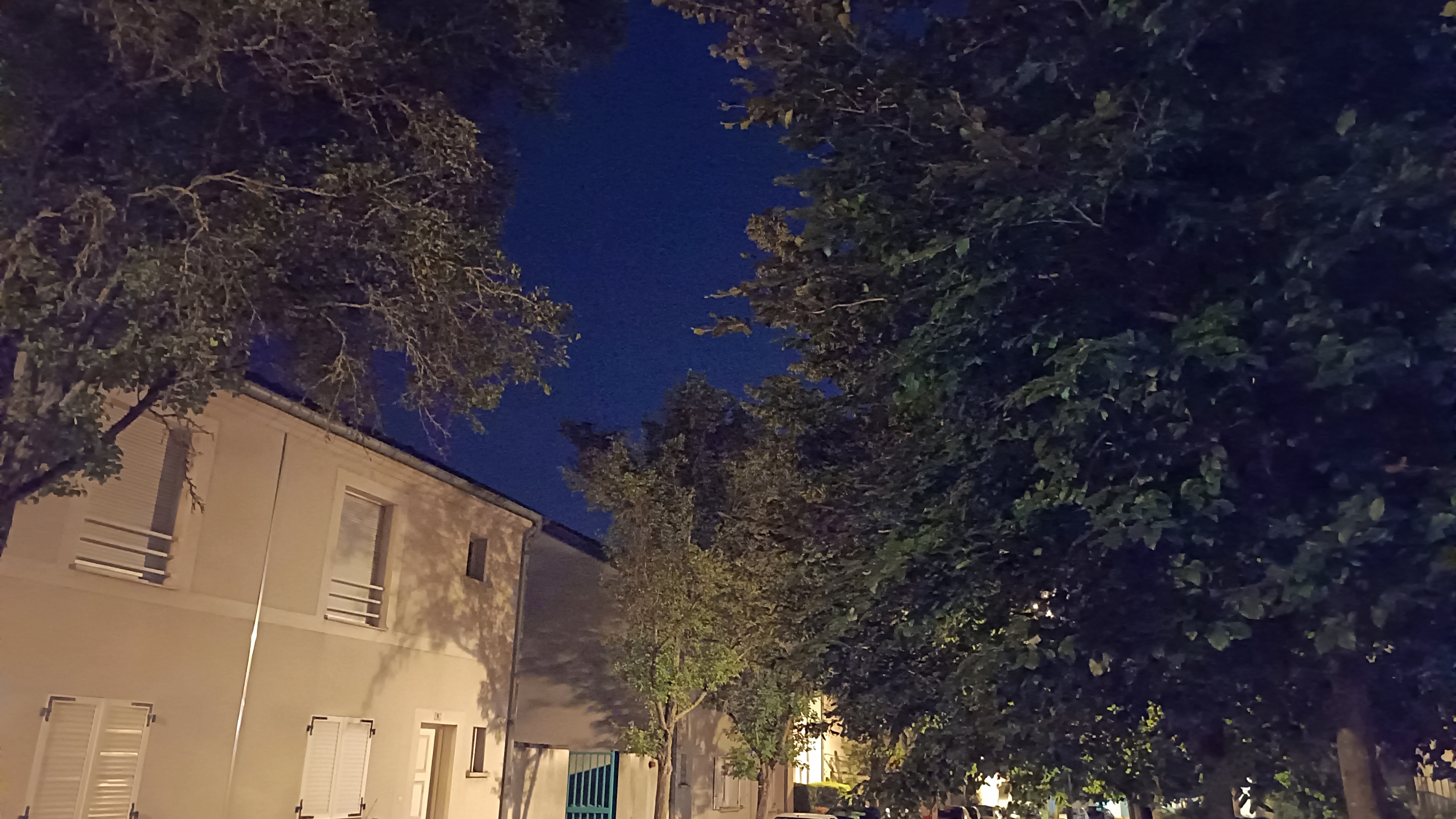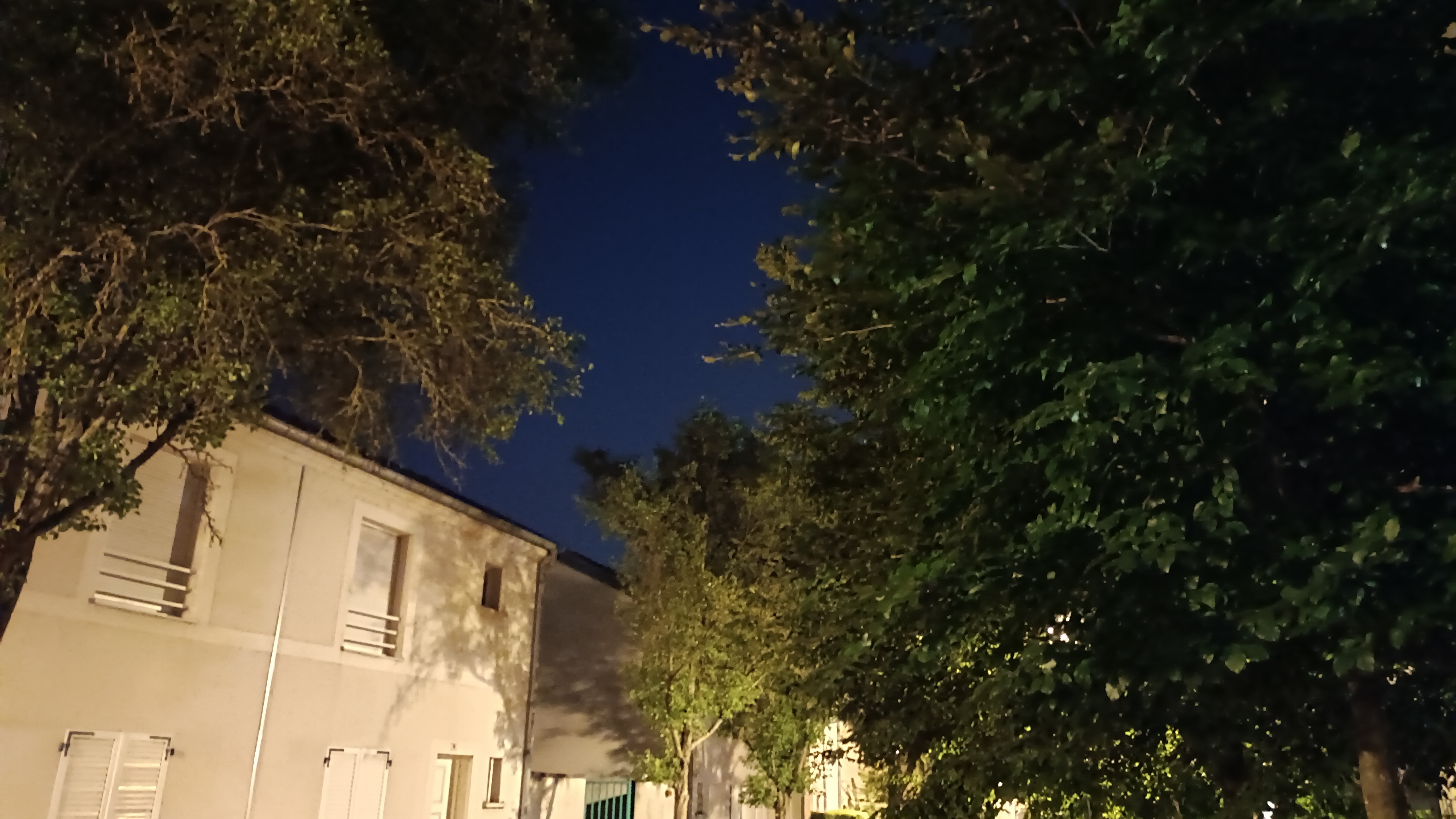 Deux photos de nuit, puis leurs versions corrigées par le mode dédié (option “Nuit” dans la barre en bas de l’écran) :