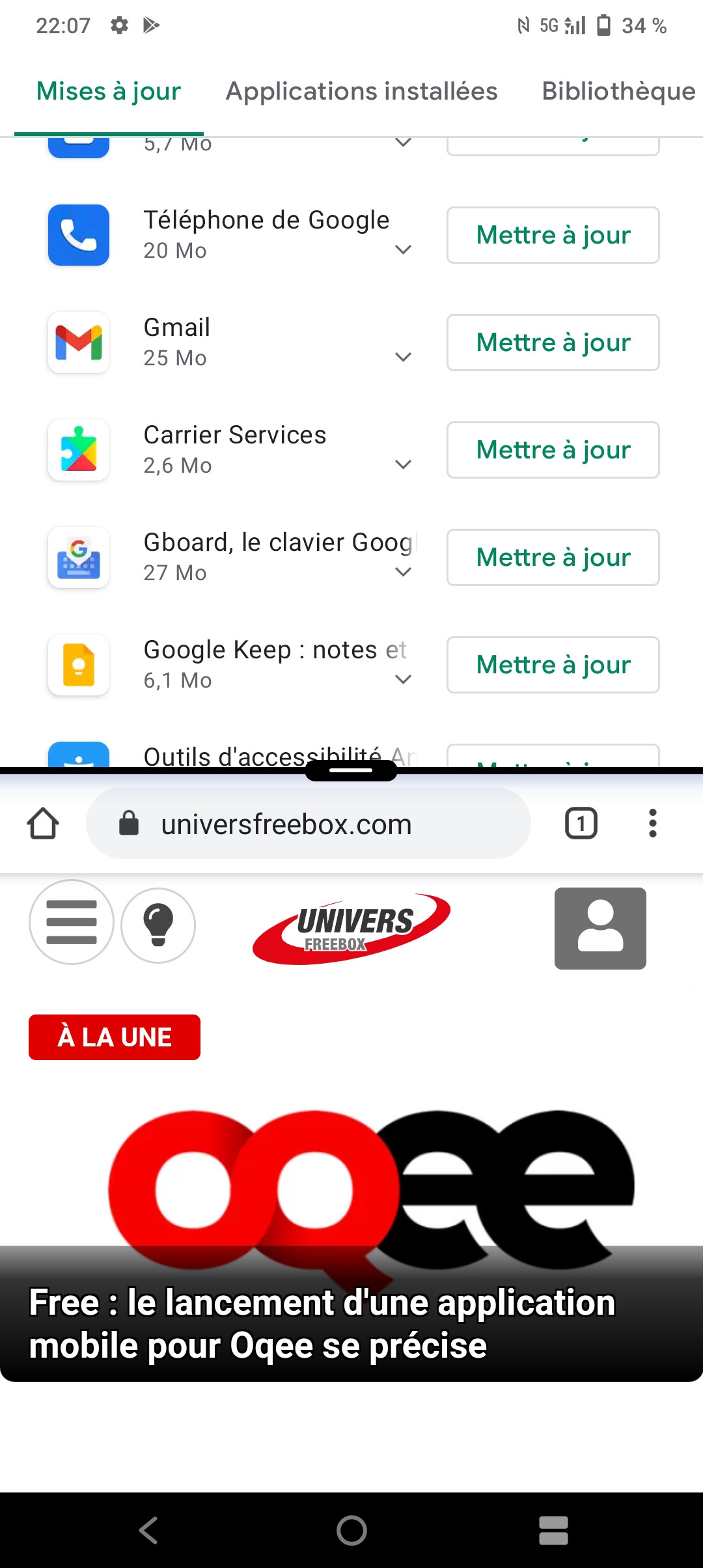 - 5 téléchargements d’applications, dont 2 gros