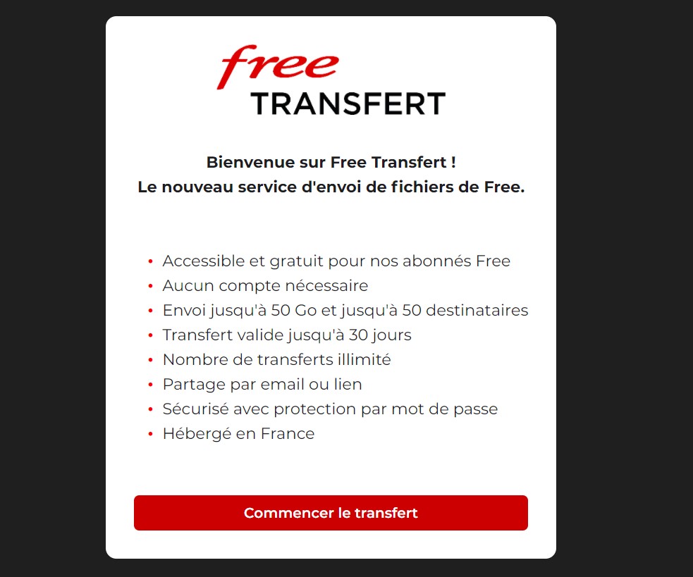“Bienvenue sur Free Transfert ! Le nouveau service d’envoi de fichiers de Free”. L’opérateur vient en effet d’inaugurer un nouveau service permettant de partager facilement ses fichiers.