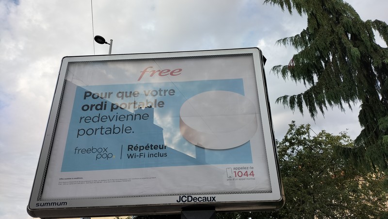 Lancée le 7 juillet 2020 et ayant ainsi soufflé sa première bougie le mois dernier, la Freebox Pop fait l’objet d’une nouvelle campagne de publicité sur le mobilier urbain, que ce soit sur les panneaux 4 x 3 ou les abribus.