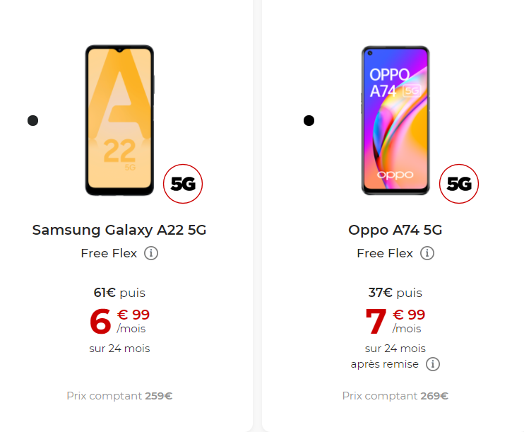 La boutique Free Mobile propose actuellement les Samsung Galaxy A22 5G et Oppo A74 5G, deux smartphones 5G à moins de 300 euros. Lequel se présente comme le meilleur choix ?