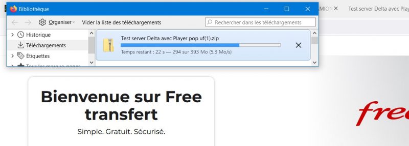 Dans le cas d’une bonne connexion fibre, avec en plus toutes les conditions réunies (ordinateur performant et connecté en filaire), Free Transfert sera vraiment pratique à utiliser en émission comme en réception, même avec un fichier assez volumineux (plusieurs Go).