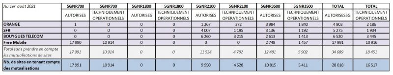 L’ANFR a publié son observatoire du déploiement de la 5G. Au 1er août 2021, 28 018 sites étaient ainsi autorisés, dont 16 517 techniquement opérationnels. “Sur le mois de juillet, les sites 5G autorisés ont donc augmenté de 7,4 %”, souligne l’autorité administrative.