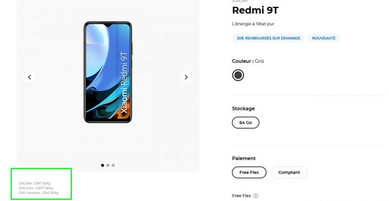 Certains mobiles de la boutique n’ont pas droit à toutes ces informations. Exemple : le Xiaomi Redmi 9T fraîchement arrivé dans la boutique. Ce n’est a priori qu’une question de temps, sachant que l’indice apparaît pour les autres modèles de la marque disponibles chez Free.