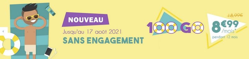 Jusqu’à 17 août 2021, un forfait 100 Go revient ainsi à 8,99 euros la première année, au lieu de 18,99 euros. Il comprend par ailleurs les appels, SMS et MMS illimités depuis la France métropolitaine, l’UE et les DOM/COM, ainsi que 100 Go de data en 4G/4G+ (débit réduit au-delà), dont 11 Go utilisables en roaming depuis l’UE et les DOM/COM.