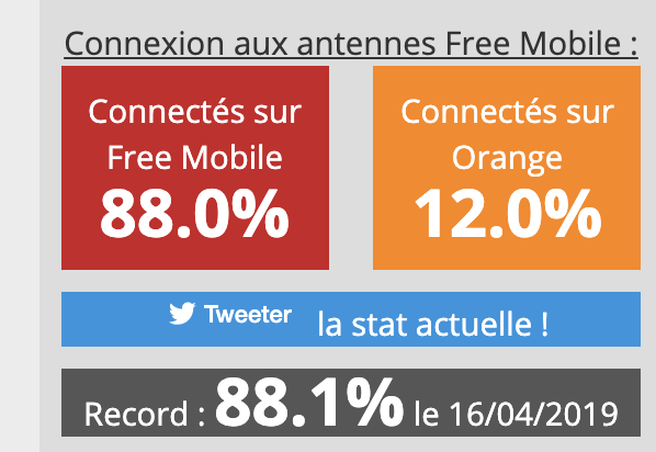 Free Mobile a semble t-il trouvé la formule gagnante. Après une montée en flèche entre fin novembre et janvier, le taux d’utilisation a fini par trouvé son rythme de croisière depuis, oscillant jusque fin mars entre 86 et 87%. Mais depuis une dizaine de jours, le réseau propre de Free Mobile remet les bouchées doubles en vue d’en finir avec l’itinérance Orange et ses débits bridés jusqu’au boutisme, une vraie plaie pour les abonnés. Tant est si bien que les records s’enchaînent jour après jour. Hier, un nouveau pic a été atteint, les utilisateurs de l’application Freemobile Netstat, ont passé 88,1% du temps sur le réseau propre de l’opérateur. Dans le même, le taux d’utilisation de l’itinérance Orange n’a jamais été aussi bas, à 11,9%. On le sait, cette montée en puissance du réseau propre de Free est en partie liée au déploiement de nouveaux sites et à l’activation des antennes 700MHz. Mais on ne peut s’empêcher aussi d’y voir un éventuel lien avec le nouvel identifiant réseau utilisé par Free Mobile depuis peu.