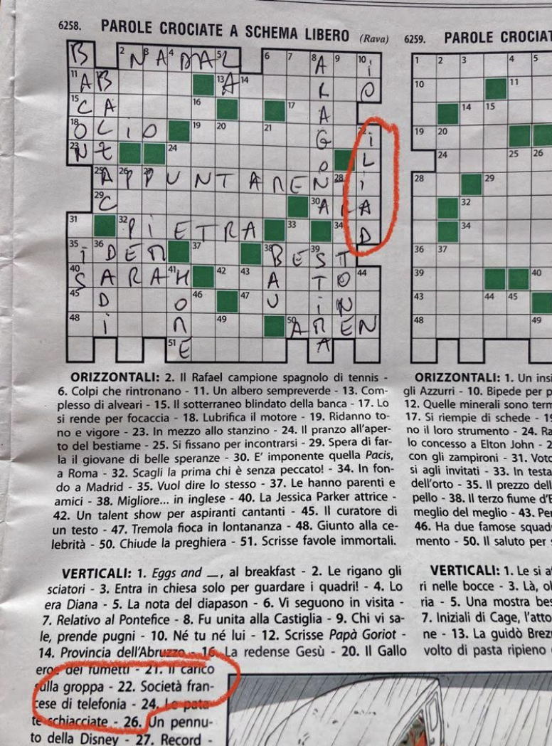 Fort de son succès et de sa Rivoluzione, Iliad fait tourner les têtes en Italie. Pas moins de 7,82 millions d’abonnés, 19 boutiques, 1400 bornes, une iliadbox prête à séduire le public en masse très bientôt, des boîtes de biscuits de 3 mètres de haut sur des places pour mettre en exergue ses valeurs de transparence, et quoi d’autre ? Une présence dans les mots croisés … C’est bel et bien vrai, en voici la preuve. Dans cette grille, figure une définition particulière, “société de téléphonie française” en 5 lettres, pas de doute il s’agit d’Iliad. Cela n’est pas sans rappeler “le jeu des mots” de la publicité diabolique de la Freebox Pop.