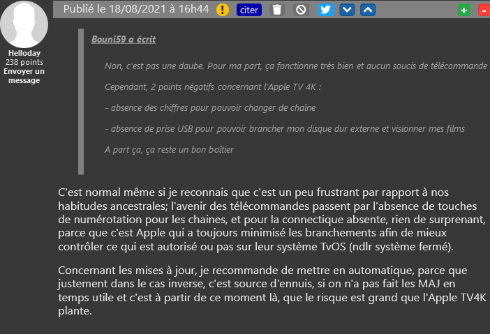 Le géant américain peut régulièrement proposer de nouvelles versions logicielles pour son Apple TV 4K et Univers Freebox vous propose un tuto pour gérer au mieux les évolutions de tvOS. L’occasion pour nos lecteurs d’échanger sur la qualité du boîtier, qui semble pour l’instant assez convaincant, malgré quelques bugs épars.