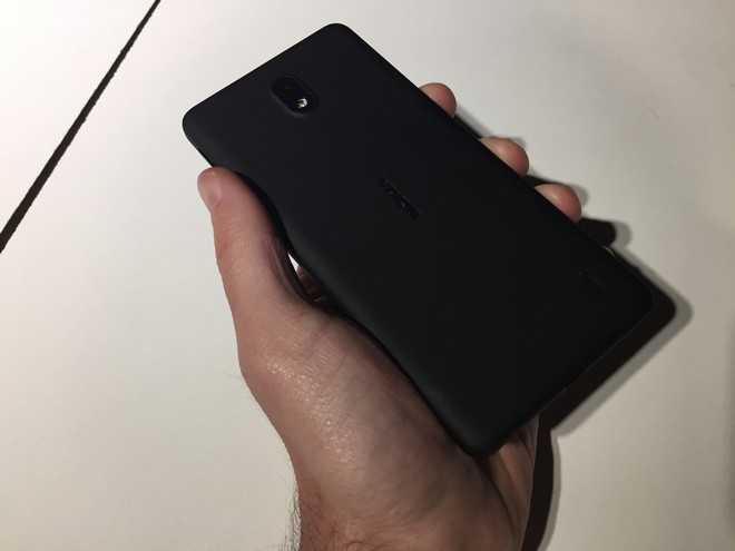Commençons par l’aspect extérieur du Nokia 1 Plus. Le smartphone donne une impression d’assemblage bien fini. Pas de jeu ou de plastique qui craque. Grâce à son dos texturé, qui se retire d’ailleurs sans mal pour accéder aux cartes SIM, à la carte MicroSD ou à la batterie, il ne glisse pas des mains. Pas d’effet savonnette. Le poids bien réparti participe à la prise en main agréable.