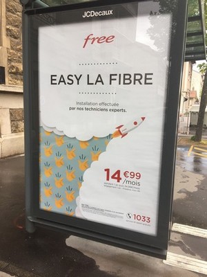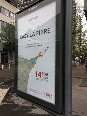 Free vient de démarrer une nouvelle campagne publicitaire sur le mobilier urbain, afin de mettre en avant sa fibre optique numéro un.
