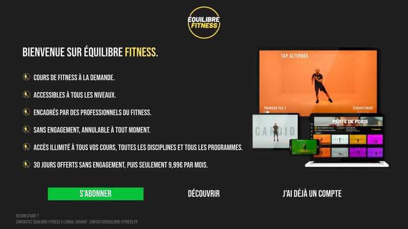 Avec Équilibre-Fitness, c’est la promesse d’un coach sportif à domicile sans se ruiner. Et il faut bien admettre que l’interface classique et efficace, le lecteur vidéo bien pensé et fluide, les contenus diversifiés, intéressants et bien présentés rendent la proposition intéressante. Qui plus est, vous avez 30 jours d’essai gratuits et la possibilité de vous désabonner à tout moment. Peut-être l’occasion de vous lancer si votre emploi du temps rend compliquée l’assiduité à une salle de sport.
