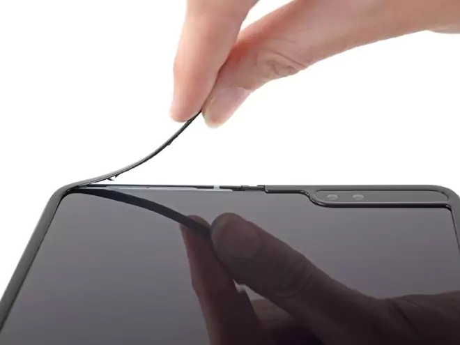 Même les protections de cet écran ne suffiraient pas à éviter ce type de dommages.En effet, deux plaques protègent la dalle de chaque côté de la pliure, mais afin de permettre au flagship de se plier, l’espace est laissé à découvert. Une protection qui a donc une faille importante du fait du principe même du Galaxy Fold.