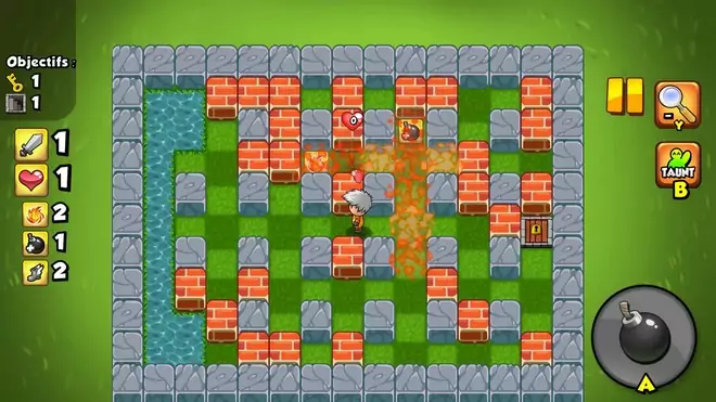 Dans les deux cas, il faut placer vos bombes au bon endroit, afin de faire exploser des briques pour ouvrir le chemin et récupérer différentes améliorations ou objets (vie, bouclier, bombe additionnelle à utiliser en parallèle de la bombe régénérée ou clé de sortie). Les bombes servent évidemment aussi à tuer les ennemis (flammes, araignées, vikings, etc.).