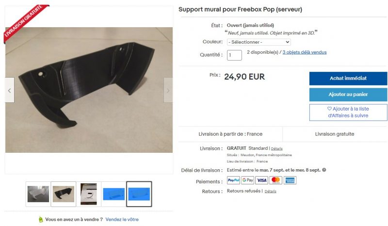 Pour les abonnés Freebox Pop ne sachant pas où ranger leurs différents équipements (server, player et répéteur Wi-Fi), un vendeur sur eBay propose des supports muraux, qui s’avèrent d’ailleurs être les seuls produits à son catalogue au moment où sont écrites ces lignes (il semble avoir flairé un business…).