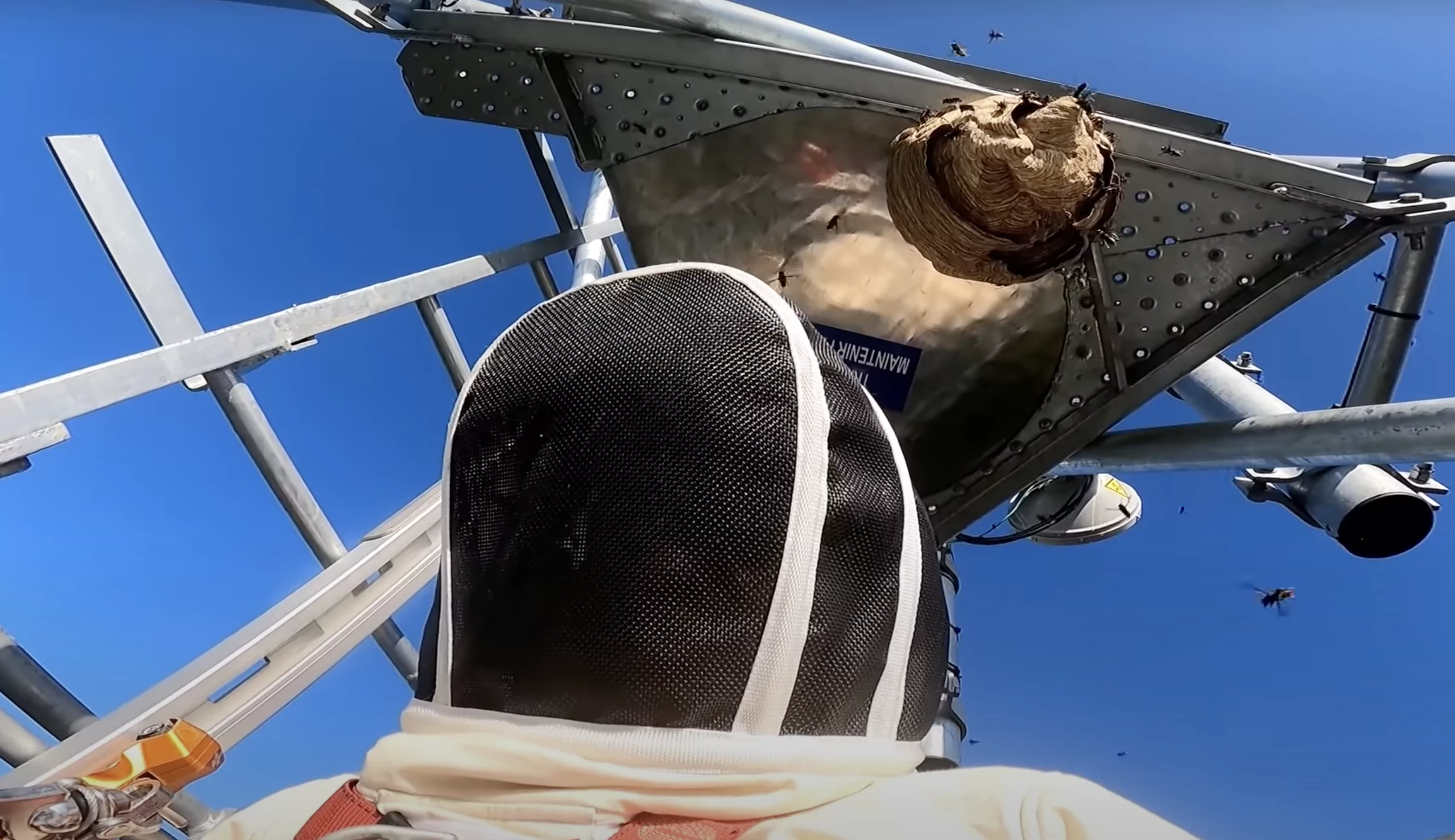 Au final, le technicien « s’est décroché comme il a pu », indique t-il avant de se sortir de ce “guêpier”. Appelé pour désinfecter le site, l’expert en profite pour faire découvrir son équipement et son intervention à couper le souffle et d’appeler à la vigilance car les antennes peuvent d’être régulièrement infestées de guêpes et frelons. La marche à suivre pour minimiser les risques, “frapper sur le pylône avec un marteau fin de le faire vibrer et ainsi anticiper le danger”, mais aussi emporter avec soi en haut du pylône, un antihistaminique.