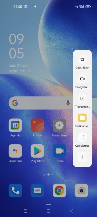 L’interface du Oppo Find X3 Lite propose quelques fonctions pratiques, dont :
