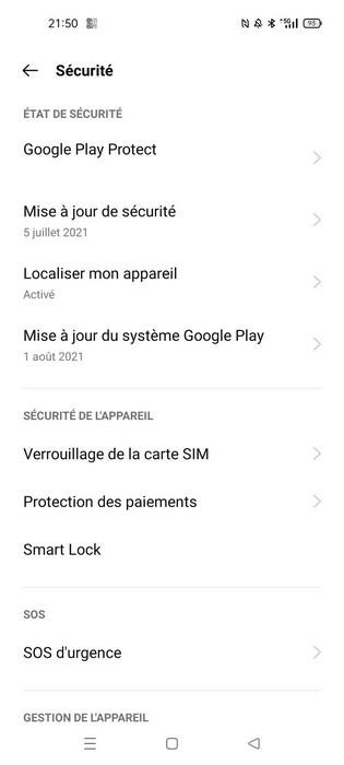 Terminons sur la partie sécurité. Au moment de la publication de ce test, nous avions les correctifs de juillet 2021, après une mise à jour de maintenance. Quant au lecteur d’empreintes et à la reconnaissance faciale, ils ont fonctionné à merveille du début à la fin. En plus d’être rapides, ceux-ci n’ont jamais nécessité un réenregistrement des données.
