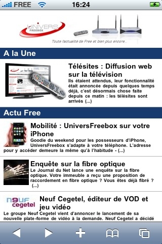 L’adresse pour y accéder demeure la même qu’à l’habitude – www.UniversFreebox.com – notre serveur web fait automatiquement la distinction entre votre iPhone ou tout autre périphérique tiers.