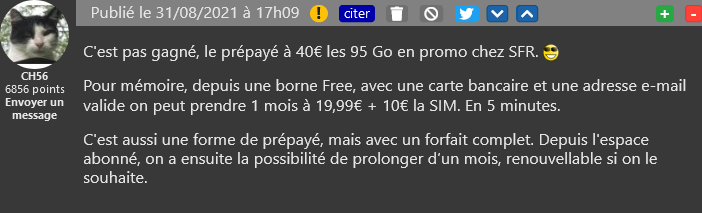 Inattendu et pourtant assez logique. SFR est le premier opérateur a lancer une offre 5G en prépayé. En souscrivant cette offre, l’abonné à le droit à 95 Go de data sur le réseau 5G de SFR et appels/ SMS/ MMS illimités en France métropolitaine mais aussi depuis l’UE vers la France et l’UE pour 40€. Cependant, les commentaires sont plutôt dubitatifs concernant l’intérêt de cette carte, certains voient la possibilité d’utiliser quelques astuces pour bénéficier d’un meilleur forfait, mais sur le réseau Free Mobile. Malin !
