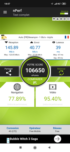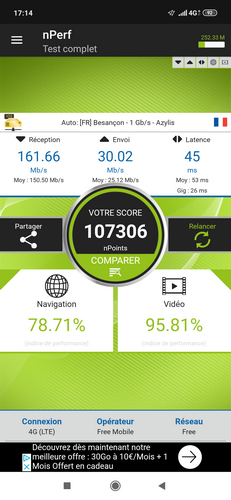 Lors de nos tests en appel, en surf 4G ou en surf Wi-Fi, rien à noter de particulier. L’accroche réseau s’avère très bonne et le surf très rapide. Dans une zone bien couverte en 4G, avec de nombreuses personnes en terrasse en raison d’une météo très favorable, nous avons atteint les 150 Mbit/s en réception sans problème. Les abonnés Free Mobile apprécieront au passage le support de la bande des 700 MHz (B28), utilisée par l’opérateur pour sa couverture 4G.