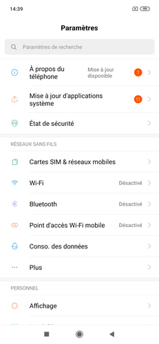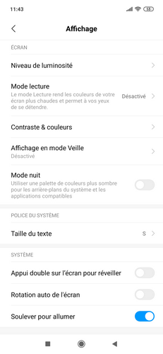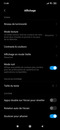 Les amateurs de mode sombre seront quant à eux servis puisqu’il est proposé dans la ROM de ce Xiaomi Mi 9. Il suffit de faire glisser le curseur « Mode nuit » dans « Paramètres / Personnel / Affichage »