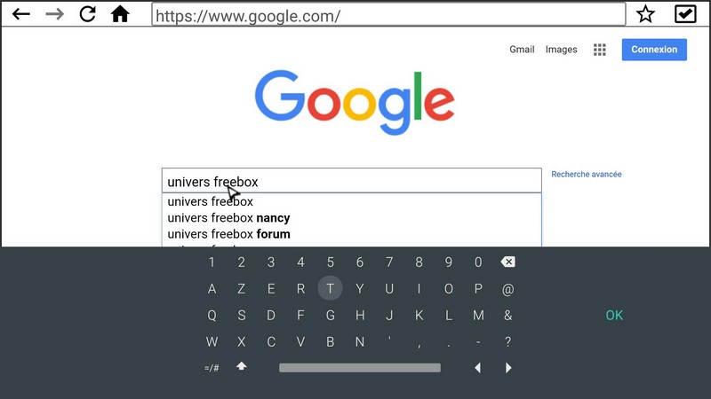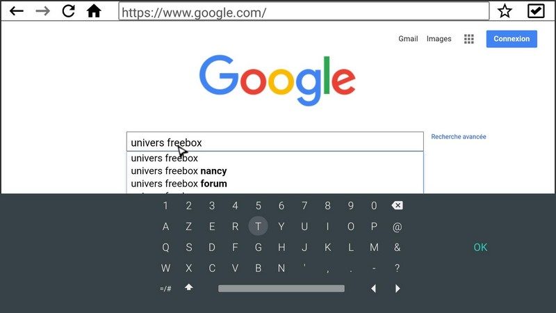 L’essentiel est là : les boutons page précédente, page suivante, actualiser, accueil et mise en favoris. Pour la saisie de vos requêtes, vous pourrez utiliser la télécommande Freebox avec le clavier virtuel. On vous conseille toutefois de brancher un vrai clavier sur votre player. Ce n’est pas pour ce que ça coûte. En revanche, la navigation à la télécommande est loin d’être rébarbative. La télécommande fera donc parfaitement l’affaire dans le cadre d’un usage ponctuel.