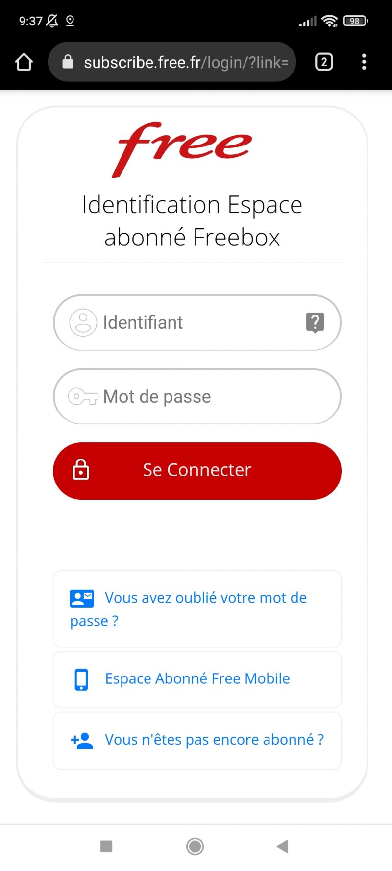 Au lancement de l’application, il vous sera proposé de vous connecter au serveur Freebox Delta.