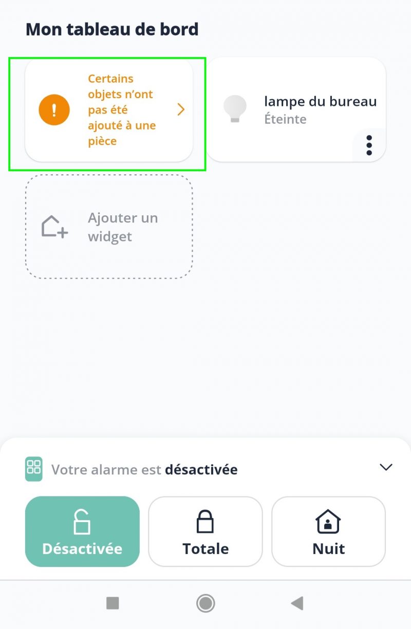 En cas de pièce non précisée, une alerte apparaîtra sur la page principale. Il suffira alors d’entrer dans les paramètres de l’objet concerné et d’indiquer la pièce.