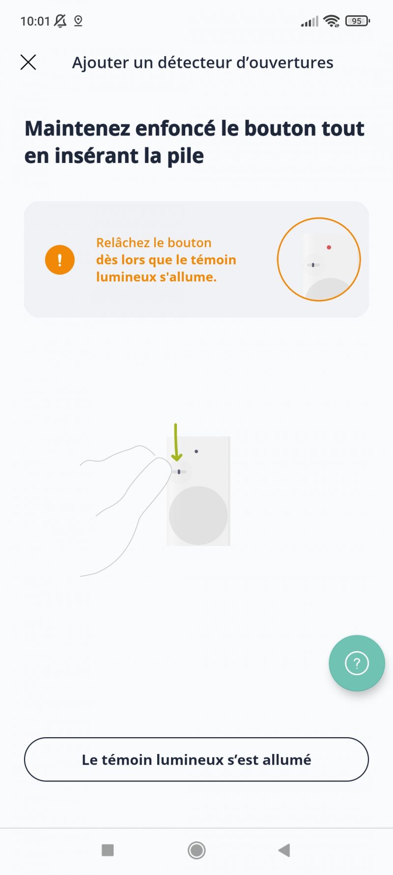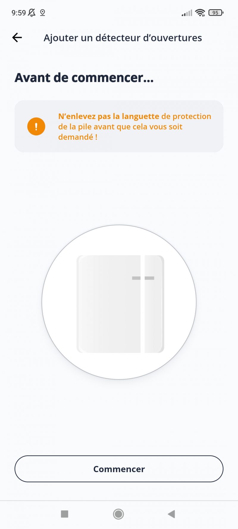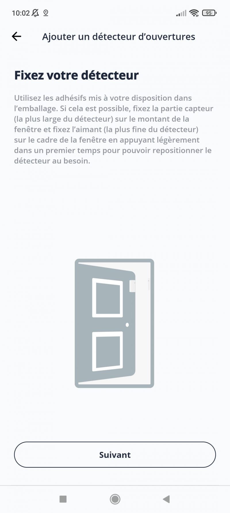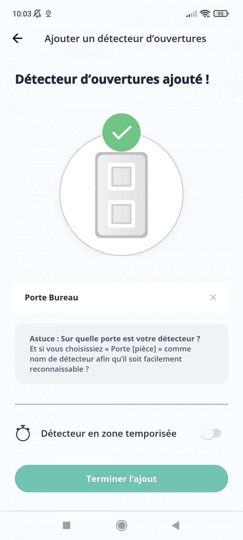 Nous avons installé le détecteur d’ouverture de portes du Pack Sécurité. Cela s’est fait en quelques minutes grâce à un processus entièrement guidé.