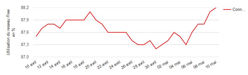 Evolution du taux d’utilisation du réseau propre de Free Mobile ( freemobile.toosurtoo.com)