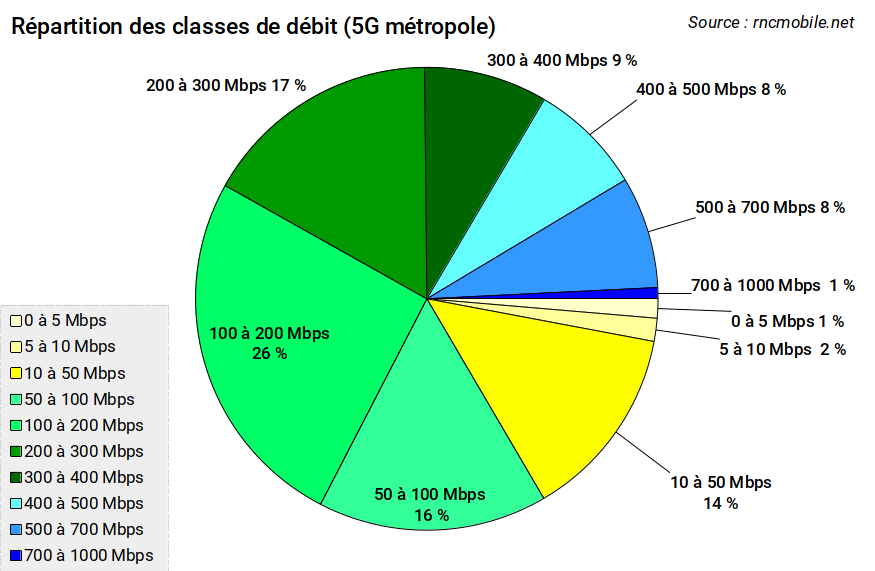 Les 851 mesures 5G portent sur 128 sites différents et ont été réalisées par une cinquantaine d’utilisateurs de l’application RNCMobile. Les mesures sont effectuées en multi-thread (de 4 à 20 threads) contrairement à certaines études qui utilisent du mono-thread. Les deux-tiers des tests portent sur une durée de 10 secondes.