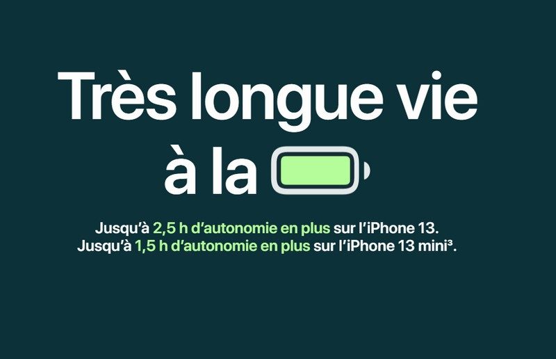 Durant sa conférence d’environ une heure et demie, le géant américain a enfin promis une amélioration de l’autonomie pour les différents modèles, grâce à la nouvelle puce A15, aux optimisations au niveau d’iOS 15 et aux batteries plus puissantes. Par rapport aux modèles iPhone 12 mini et iPhone 12, les iPhone 13 mini et iPhone 13 laissent espérer 1,5 et 2,5 heures d’autonomie en plus. Des améliorations similaires ont été annoncées entre les iPhone 12 Pro et iPhone 12 Pro Max, les iPhone 13 Pro et iPhone 13 Pro Max.