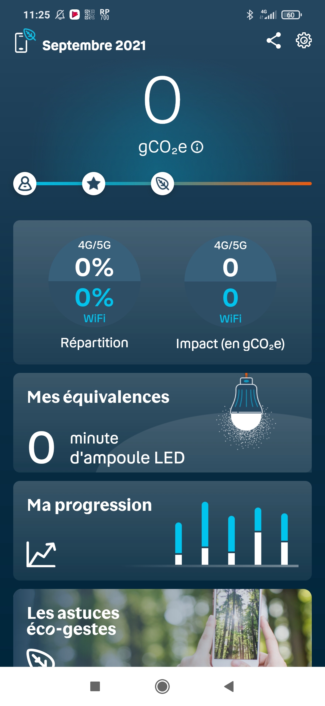 - La répartition de son empreinte carbone entre Wi-Fi et 4G/5G