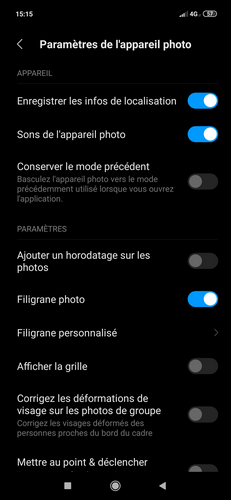 Notez enfin qu’il faudra penser à désactiver le filigrane d’origine ou à le personnaliser si vous ne souhaitez pas garder celui indiquant une capture réalisée avec le triple capteur photo du Mi 9 SE. Pour cela, ouvrir le menu principal de l’application photo, puis faire "Paramètres/Paramètres/Filigrane photo".