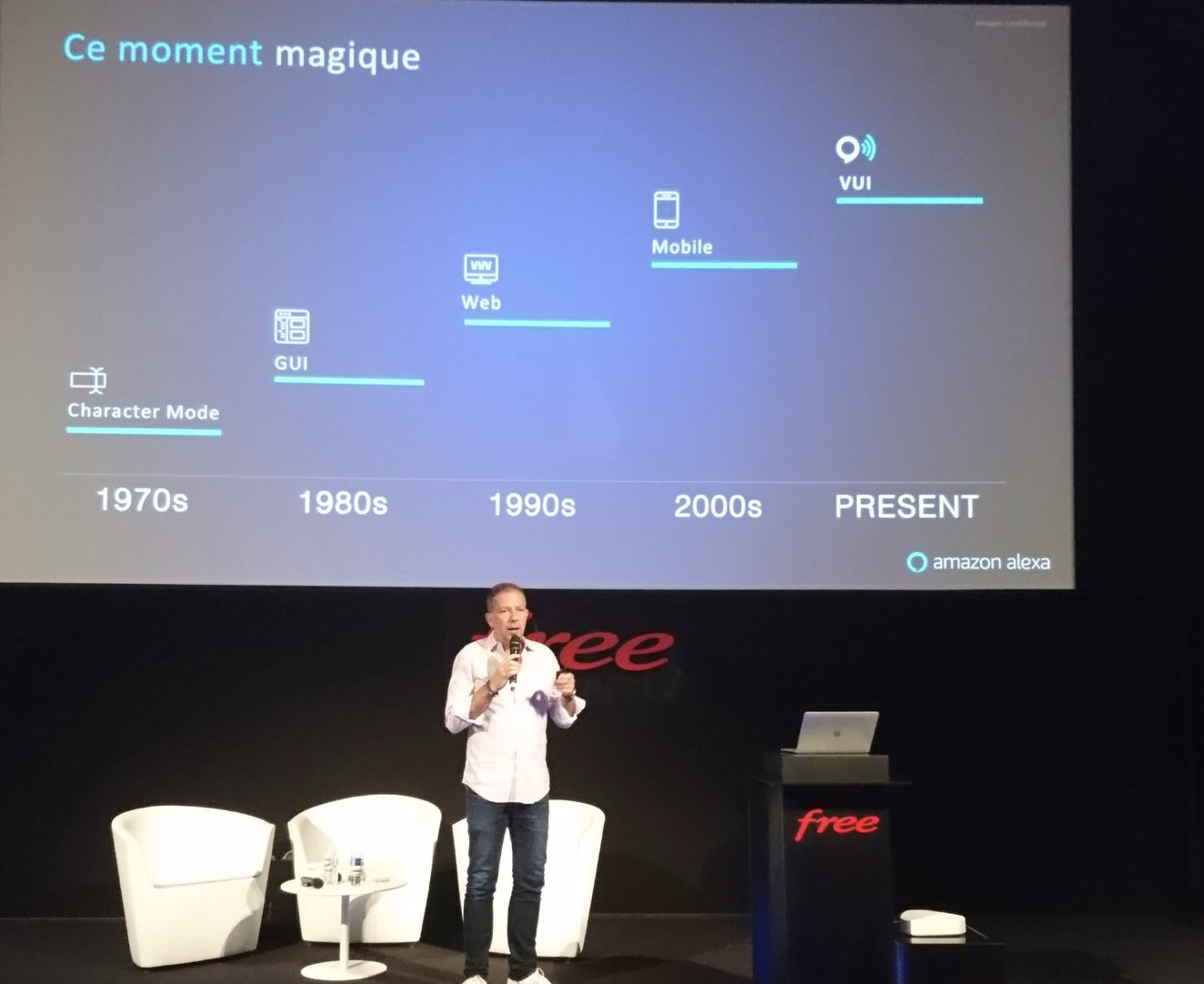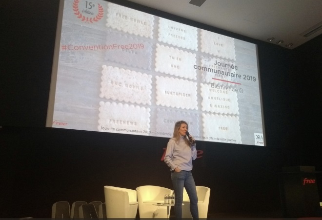 Comme à l’accoutumée, Angélique Gérard a lancé les festivités avec la présentation du programme de la journée. L’occasion également de faire le point sur 2018 et la présence accrue de Free sur le terrain, avec 1 Free Helper pour 900 habitants. Le réseau de distribution de l’opérateur est en perpétuelle évolution avec au compteur 61 Free Centers. Sans oublier les 4 500 employés dans les centres de contact de l’opérateur, principalement en France.