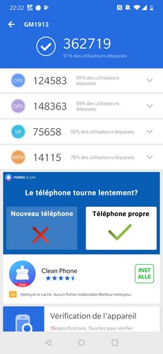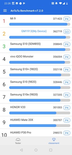 Pour les amateurs de benchmarks, nous avons également soumis le OnePlus 7 Pro à AnTuTu. Il se retrouve dans le haut du panier, entre le Xiaomi Mi 9 et le Samsung Galaxy S10.