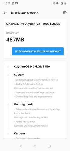 Parlons enfin des mises à jour. Au démarrage, une mise à jour pesant 487 Mo nous proposait l’installation des patchs de sécurité du mois d’avril 2019. Elle venait également améliorer la qualité photo.