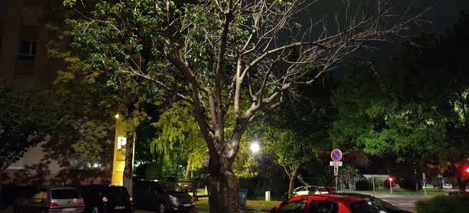 Des clichés pris le soir, sans puis avec le mode "Paysage Nocturne" :